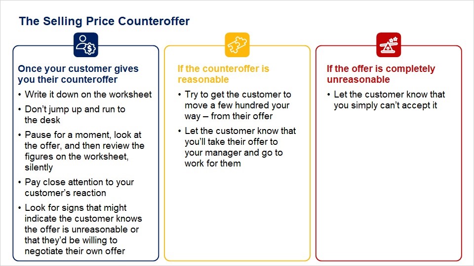 Describe how to present a counteroffer to your customer.