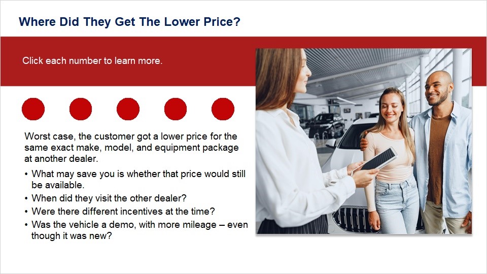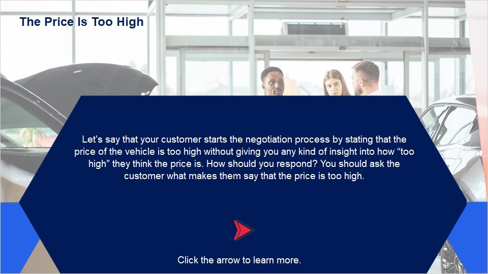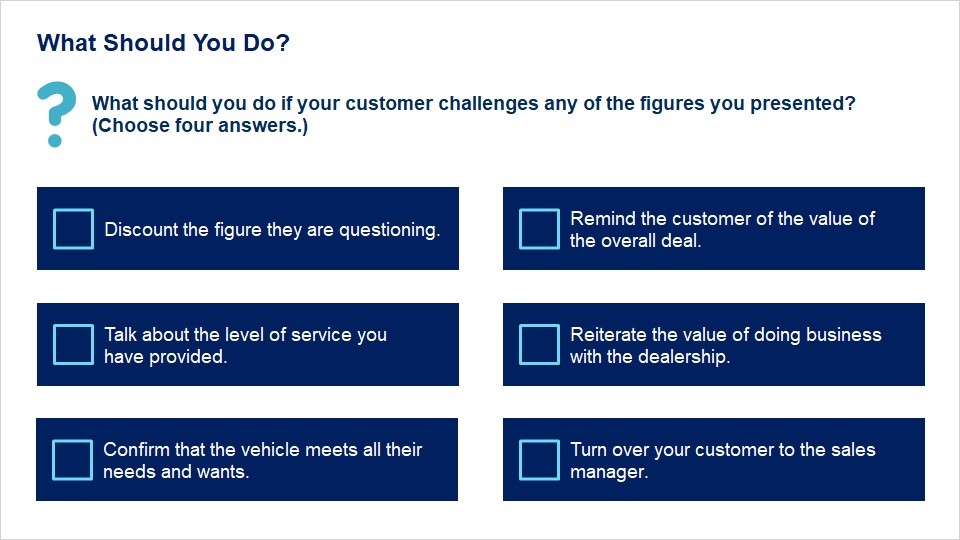 Summarize how you will respond to customers who challenge the trade value or the price of the vehicle.
