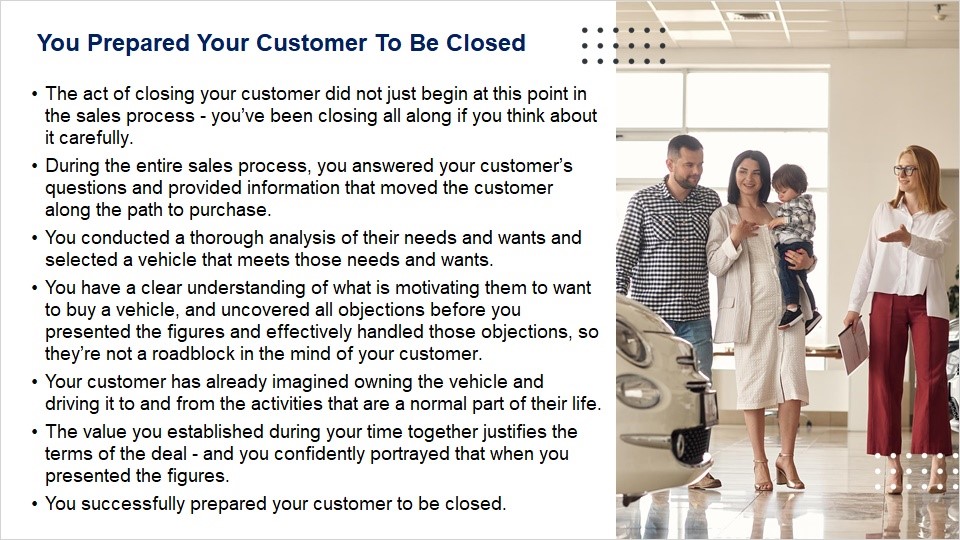 Explain what you did to prepare your customer to be closed during the sales process.