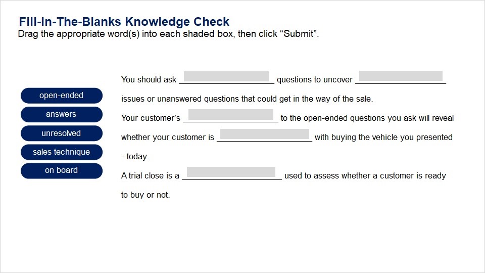 Conduct a trial close.