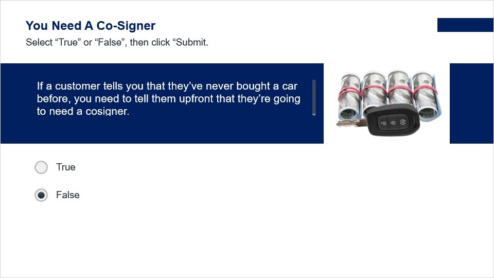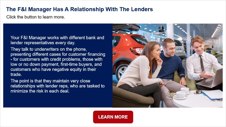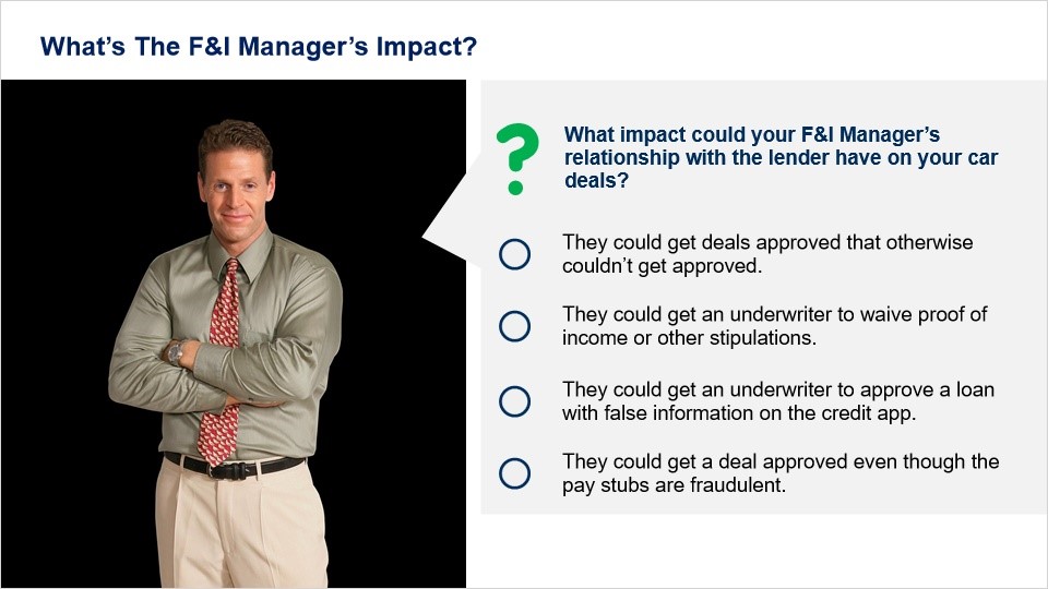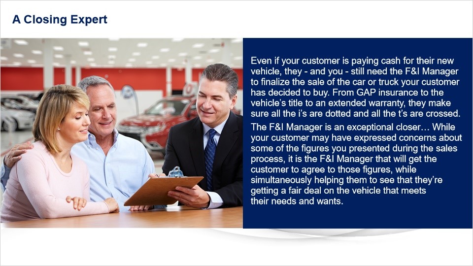 Explain why you should never take on the role of an automotive finance specialist during the sales process.